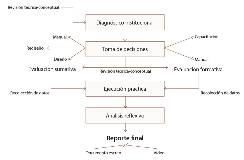 Las personas participantes decidieron elaborar un manual de procedimientos para ambos tipos de evaluación, con el propósito de disminuir falencias encontradas e integrar lo indicado por los estándares internacionales.