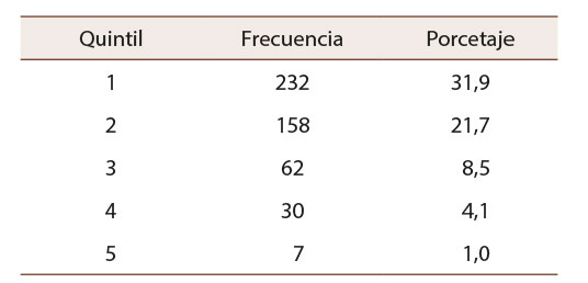 En relación con el nivel socioeconómico, como se observa en la Tabla 1, del total de estudiantes el 80% pertenece a los quintiles más bajos de la sociedad chilena, el 47,4% del quintil 1 y el 32,3% del quintil 2. Solo el 12,7% de estudiantes pertenece al quintil 3, el 6,1% al quintil 4 y el 1,4% al quintil 5. Los quintiles refieren a la medida oficial impuesta por el Estado chileno para clasificar a la población, de acuerdo con su capital económico, donde el quintil uno el que describe a la población más pobre y el cinco el que describe a la población con mayor poder adquisitivo.