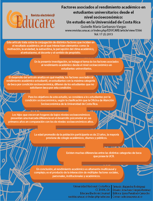 Garbanzo, G. (2011). Factores asociados al rendimiento académico en estudiantes universitarios desde el nivel socioeconómico: Un estudio en la Universidad de Costa Rica (Tesis doctoral). Universidad de Costa Rica, San José, Costa Rica.