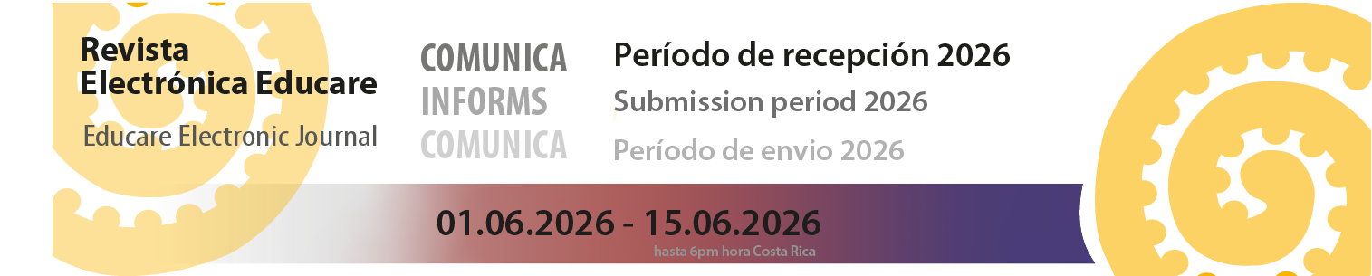 Types of articles: Original articles (derived from research on educational activities, bibliographical reviews and essays). Languages: Educare receives articles in their original languages: Spanish, English or Portuguese.