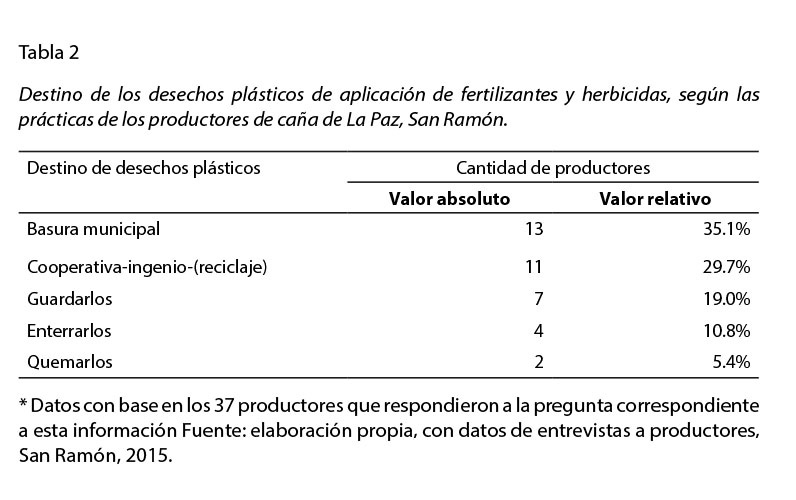 Para la preparación de los suelos, el 62.8% de productores usa bueyes, 30.3% chapulín, y 6.9% manual. El uso de prácticas manuales y mecánicas para la remoción de maleza es muy empleado y parece que va en aumento, no se practica la quema mediante fuego de suelos o malezas, no obstante, usan herbicidas para su eliminación (12 tipos de productos químicos), además de fertilizantes químicos, todos estos generan residuos y desechos plásticos con destinos finales diversos (ver tabla 2).