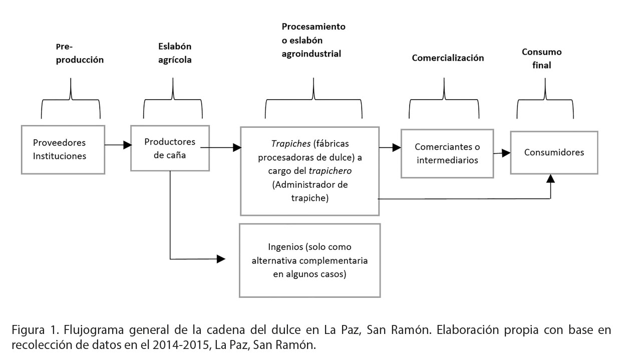 Si bien la modalidad de agricultura empresarial y a gran escala busca satisfacer una serie de demandas propias del sistema de consumo mundial actual, existe también una agricultura más local y rural basada en una producción a cargo generalmente del núcleo familiar, que por sus características de producción genera procesos más sostenibles y con mayor impacto sobre la calidad de vida de la población local. En este sentido, la producción de panela o tapa de dulce en la comunidad de La Paz, ubicada en el cantón de San Ramón, Costa Rica, involucra una serie de actores que van desde el eslabón agrícola, agroindustrial hasta el de comercialización, que conservan las características de ser productores a pequeña y mediana escala con una orientación de mercado meramente local.