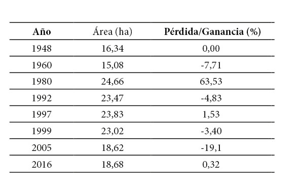 Cuadro 1. Cambios en el área del Humedal San Vito según fotografías aéreas