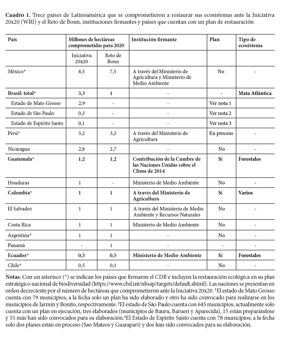 Keywords: Brazil, Bonn Challenge, Colombia, Convention on Biological Diversity, Ecuador, Guatemala, Initiative 20x20.