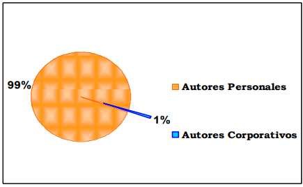 También, este gráfico muestra que la mayor parte de contribuciones fueron realizadas por autores(as) personales. Esta situación puede ser producto del gran interés que existe en los(as) autores(as), de destacar de forma personal y obtener el reconocimiento de sus obras e investigaciones.