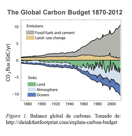 En la figura 1 se ilustran los numerosos procesos de intercambio entre los cuatro grandes reservorios de carbono (la atmósfera, los océanos, la tierra y los combustibles fósiles) y dejan en claro que el ciclo de carbono global es un sistema complejo, que puede amortiguar con intervenciones pequeñas; pero donde es difícil predecir el efecto de las más grandes. Al parecer, las intervenciones humanas, en los últimos 150, pueden considerarse como grandes.