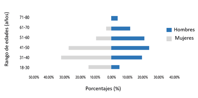 En el sector rural, tradicionalmente se ha encontrado una mayoritaria participación en labores de producción del género masculino; en la actualidad se busca generar una equidad entre géneros donde se priorice el empoderamiento de la mujer, que históricamente ha cumplido un papel más doméstico que productivo. Para este análisis se pudo observar una gran participación de mujeres líderes de asociaciones y cabeza de familia que participan activamente en las capacitaciones (Figura 9).