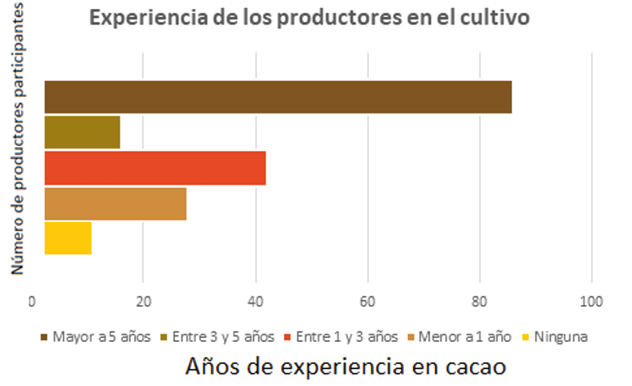 Esta conclusión conduce a una de las hipótesis planteadas donde se hacía una diferencia entre dos departamentos convencionalmente productores del país versus dos departamentos que están apenas incursionando en la producción de cacao.