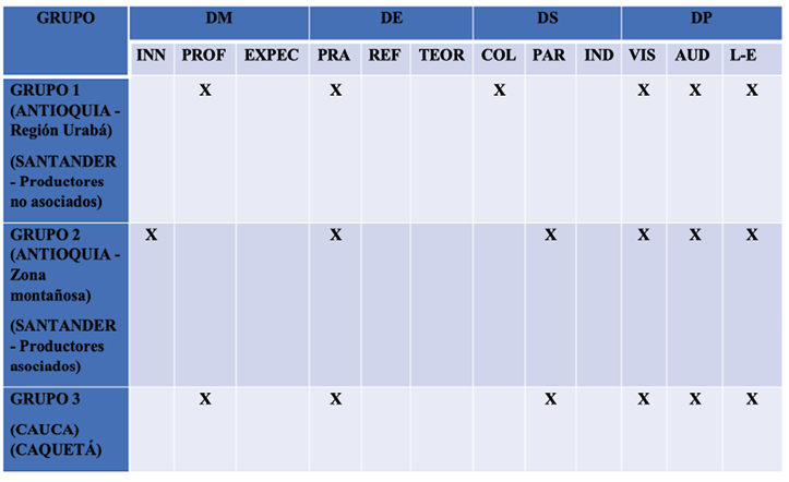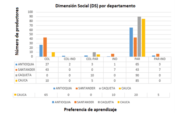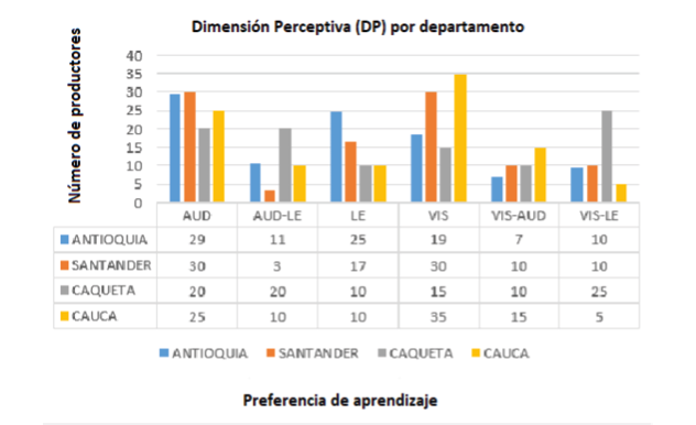 En la mayoría de las dimensiones se presentaron variables predominantes con gran porcentaje de preferencias, exceptuando la dimensión perceptiva (DP), la cual tuvo variables distribuidas heterogéneamente en cuanto a las preferencias de los productores y las productoras.
