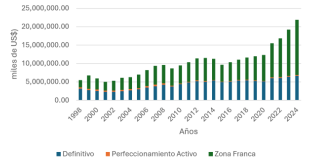 Gráfico 1. Costa Rica: Evolución de las exportaciones por tipo de régimen (miles de US$)